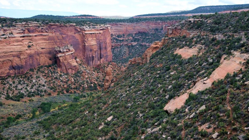 Rim Rock Drive is one of the most spectacular drives in the United States. Redrock canyons, crisp blue skies, and verdant green juniper highlight the fantastic views along the road for motorists. The road is challenging, narrow, and steep in some sections with sheer drop-offs. If you are afraid of heights, some sections of Rim Rock Drive could be difficult to navigate. I find it is best to start at the Devils Kitchen area on the southeast end of the park starting on Monument Road and onto Rim Rock Road and make your way to the West end and Visitor Center. By traveling east to west almost all the pull offs on the rim drive are on your right.