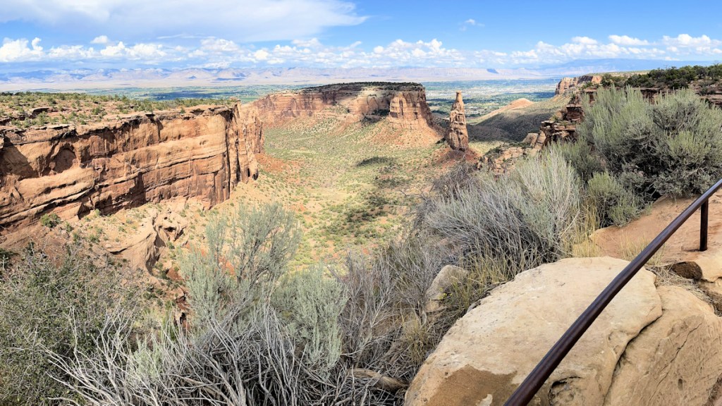 A short drive from the town of Grand Junction, the Colorado National Monument allows you to experience sheer-walled, red rock canyons and towering monoliths within a vast plateau and canyon panorama. You could spend a full day visiting here, with many trail hikes (Echo Canyon, Coke Ovens, Canyon Rim, Window Rock, etc.). But for the Disabled Traveler Colorado National Monument’s Rim Rock Drive has many viewpoints with no hiking required.