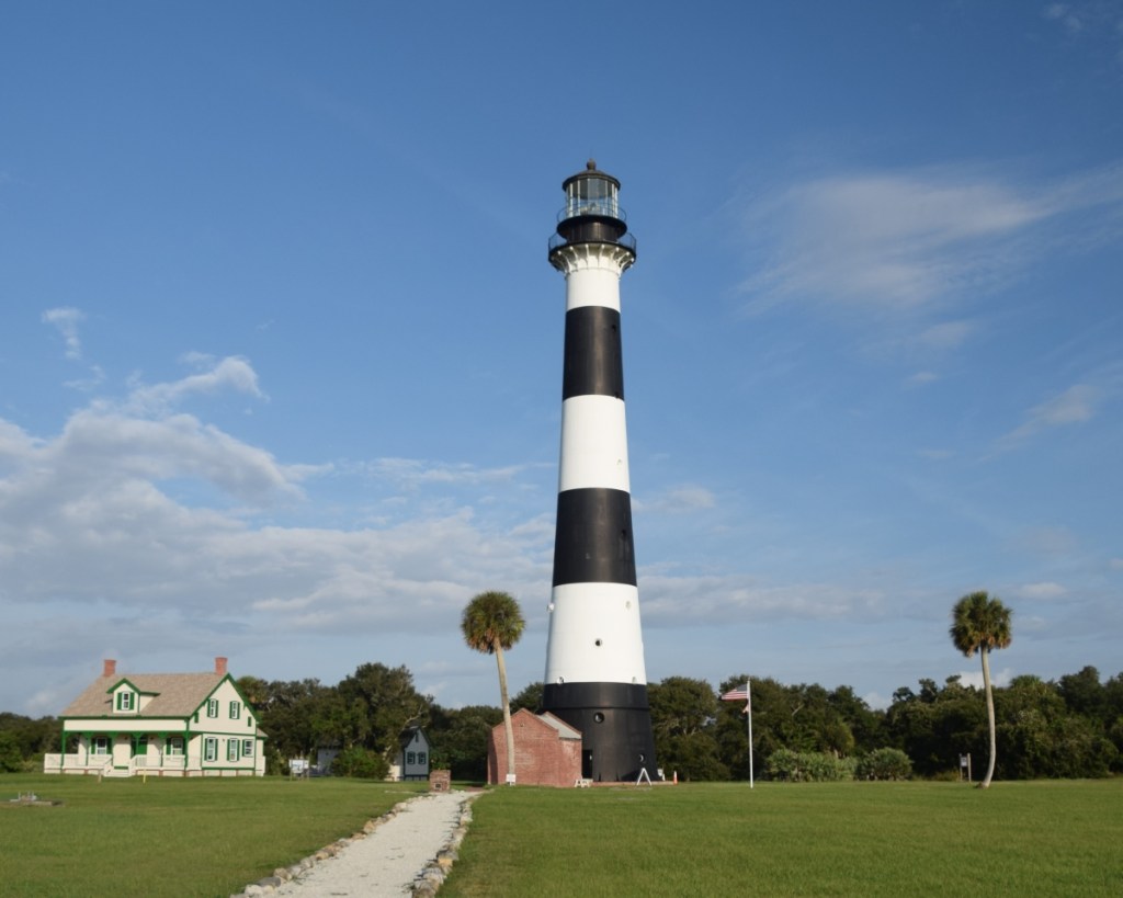 The Cape Canaveral Lighthouse is located on Cape Canaveral Space Force Station. The only way to access the lighthouse is via Cape Canaveral Tours as they have a special deal with the Cape Canaveral Space Force Base where the lighthouse sits. The lighthouse itself is very well preserved, as are some of the buildings around it. The replica of the Keeper’s house is a nice little museum and gift shop.