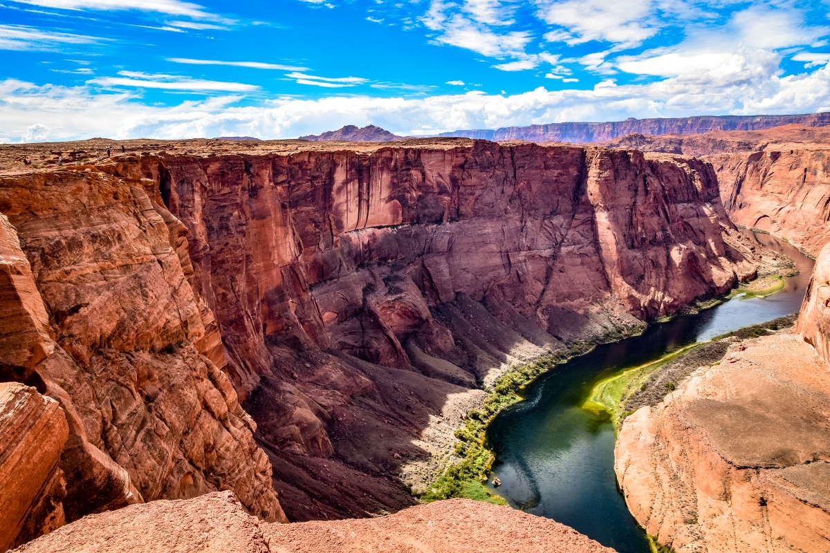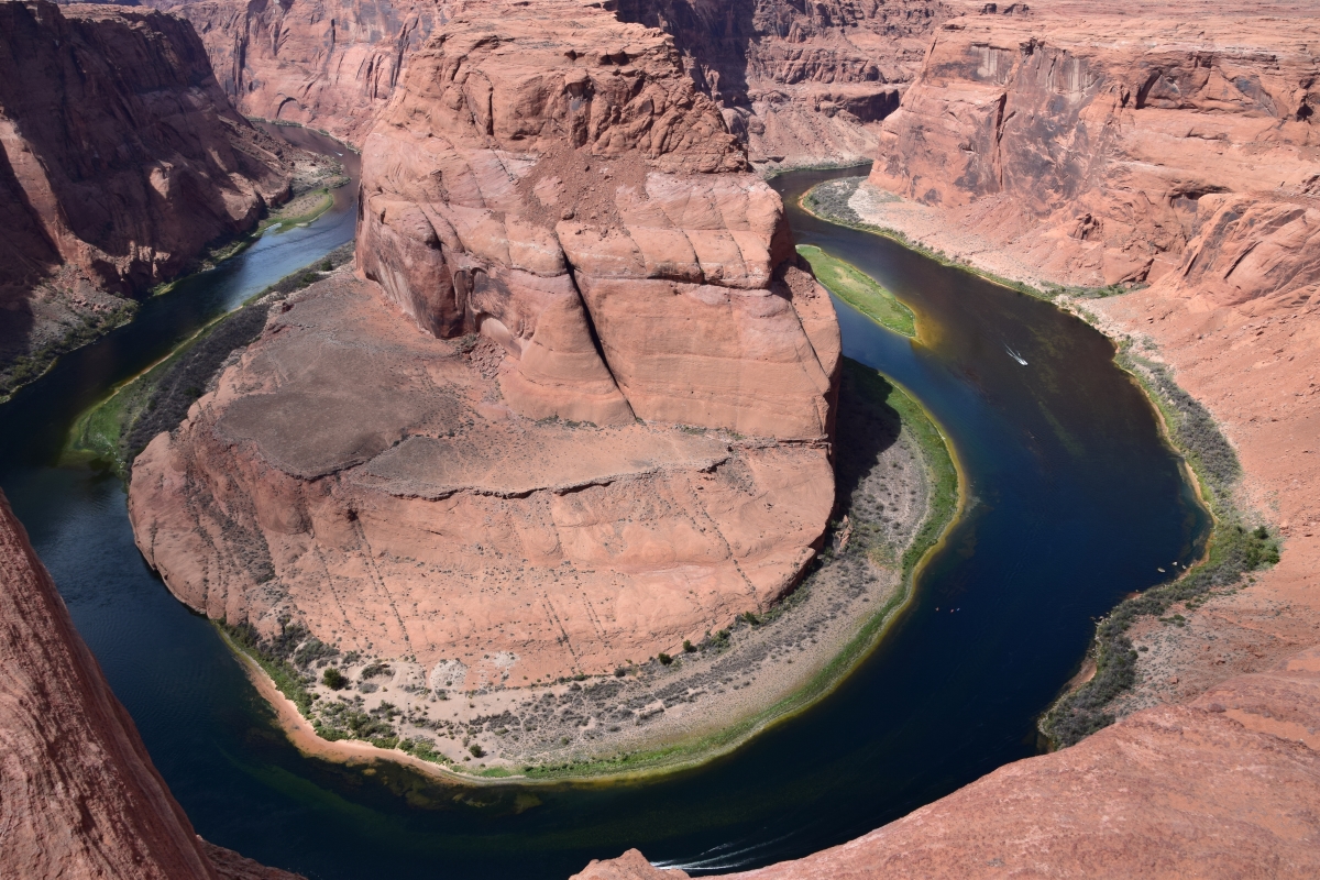 The stunning natural formation of Horseshoe Bend in Glen Canyon is truly a testament to the incredible power of the Colorado River. As the river flows downstream towards the sea, it gracefully navigates through the rugged terrain, carving its way through the layers of sandstone over the course of millennia. Over time, the river cuts through the uplifted layers of sandstone and at Horseshoe Bend, the Colorado River created a roughly 1,000 ft deep, 270º horseshoe-shaped bend in Glen Canyon. This remarkable geological feature serves as a reminder of the enduring force of nature and the remarkable landscapes it creates.